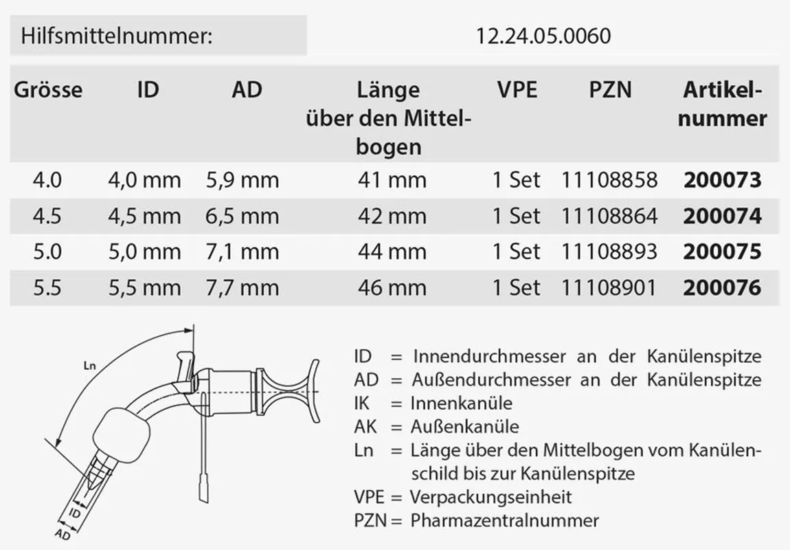 Produkteigenschaften pädiatrische Trachealkanüle PEDC von Primed
